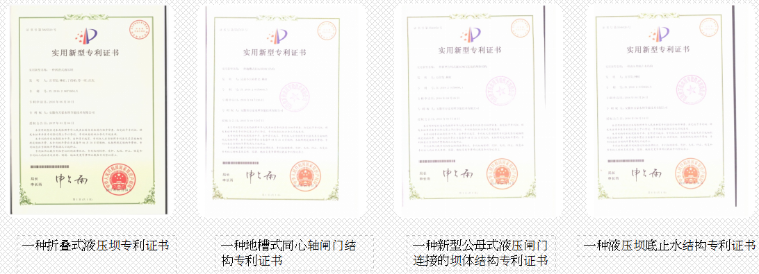 液壓升降壩專利證書